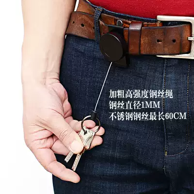 Multi-purpose simple belt buckle portable anti-theft stainless steel wire rope keychain creative metal shell telescopic pull buckle
