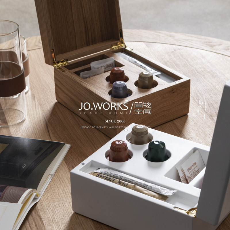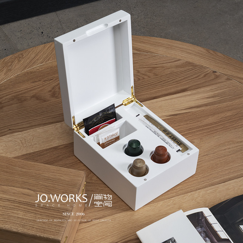 JO WORKS Desktop Containing Box Solid Wood Coffee Bag Tea Bag Containing Box Flip Finishing Box Hotel Room Disposal