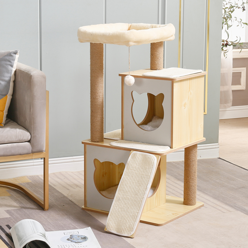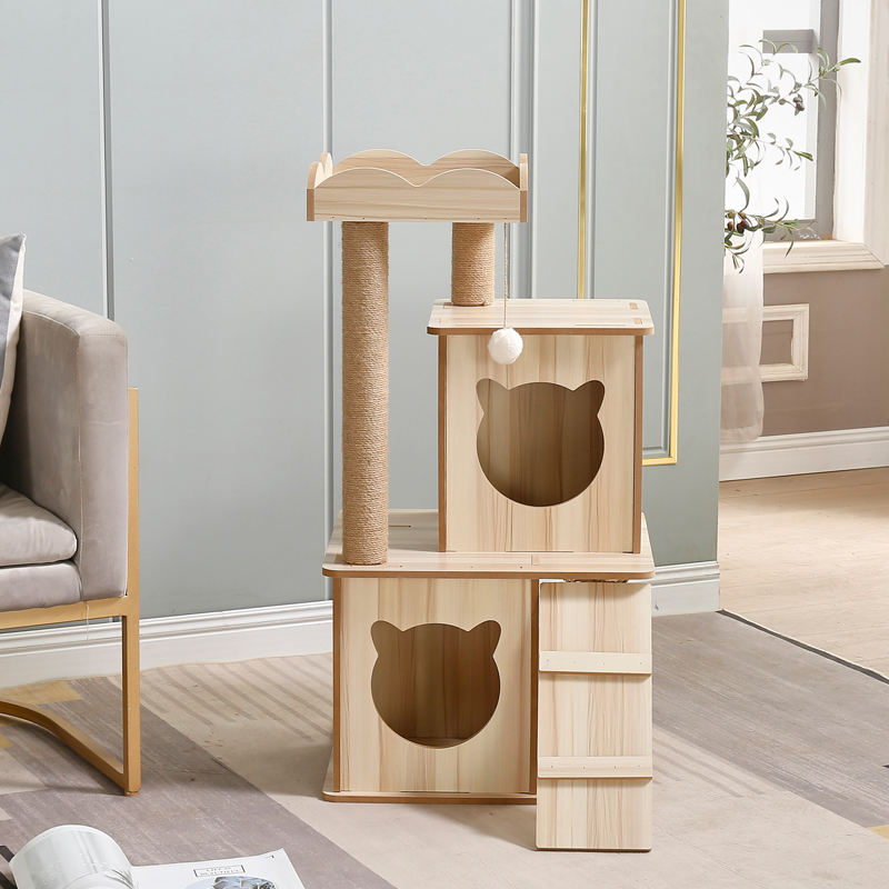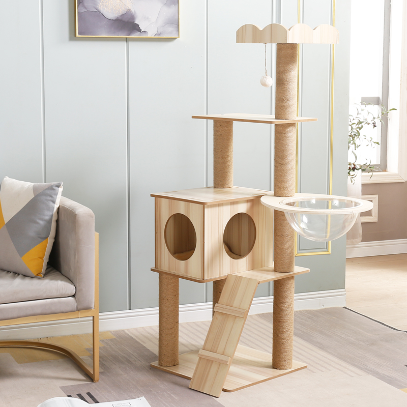 Space Cabin Cat Climbing Wooden Feline Cat Tree Integrated Cat Grabbing Pole Cat Jumping Terrace Multi-storey Cat Villa Four Seasons Universal-Taobao