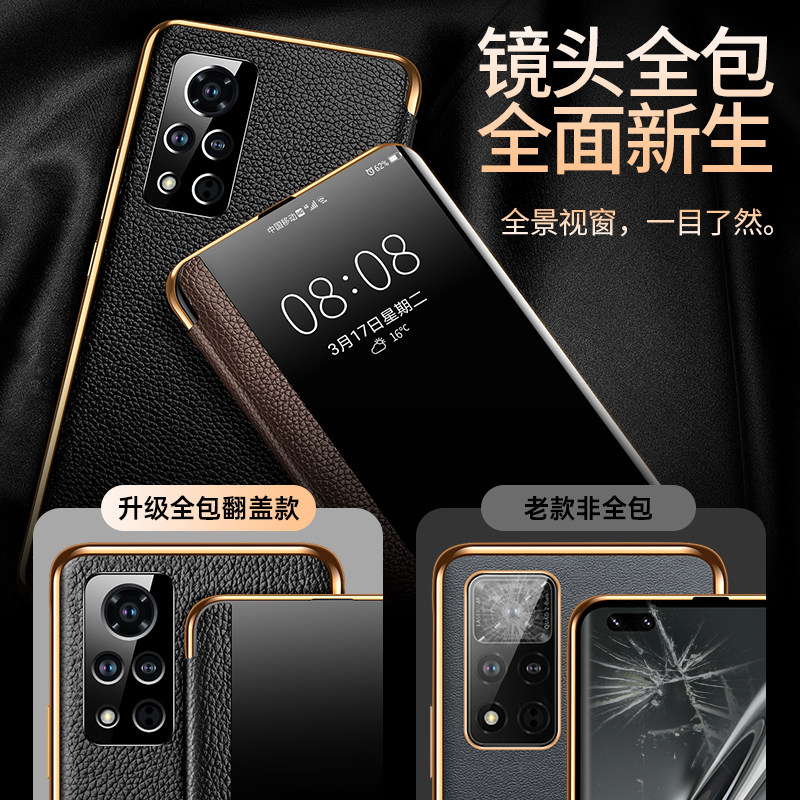 Suitable for glory v40 mobile phone protection shell new v40 light lavish protective shell genuine leather honor lens full package ultra-thin anti-fall leather sleeve curved screen pro leather upscale men's high level sensual surf