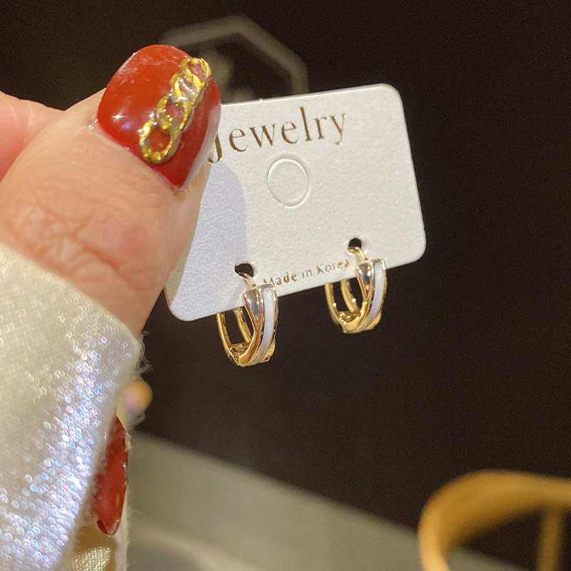 Minimal wind cross ring ring drop glazed earrings female in Korea simple lily-paired net red jewelry cold wind ear crashes