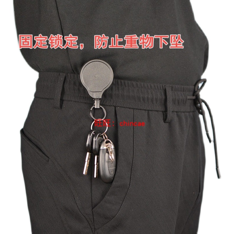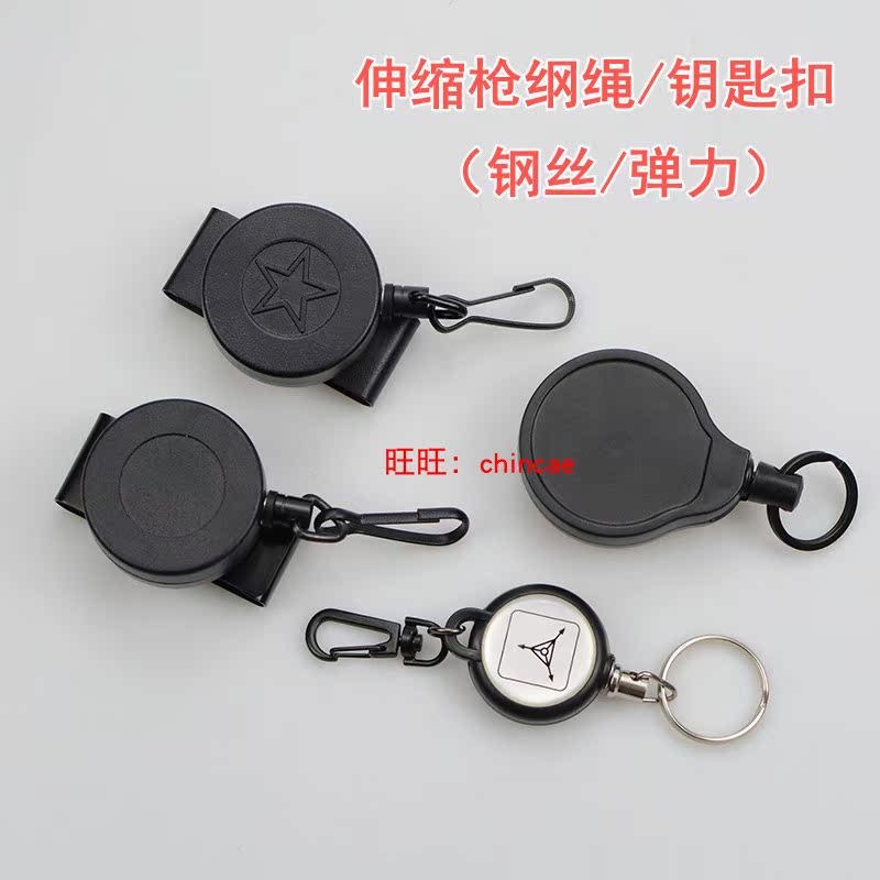 Waist hanging metal telescopic safety rope gun outline anti-robbing and anti-lost steel wire gun rope key chain pendant easy-to-pull buckle elastic chain