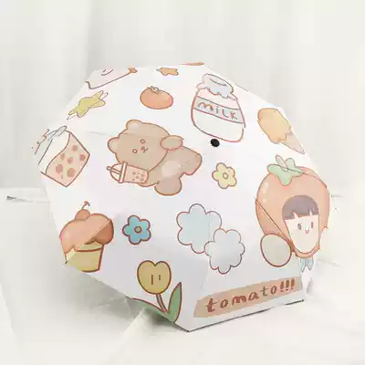 Japanese cute tomato girl little CK parasol sunscreen anti-UV umbrella women folding automatic sunny dual use