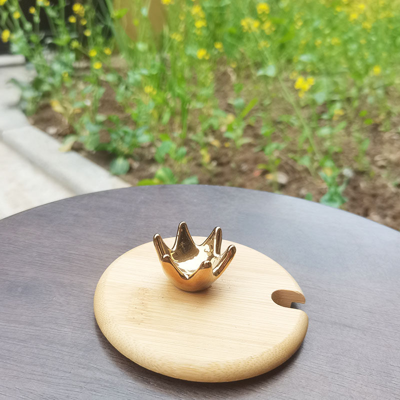 Gold sleeper Crown eco-friendly solid wood bamboo diy handmade Mark water ceramic cup lid