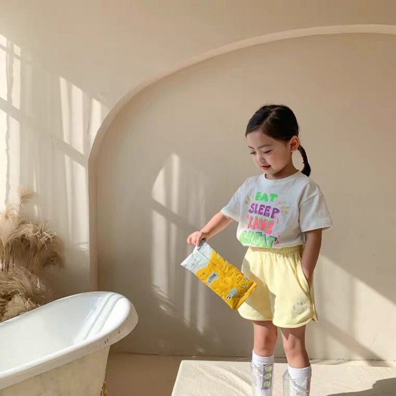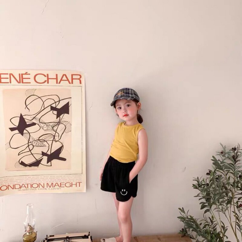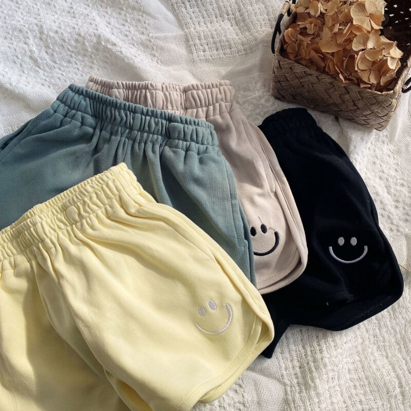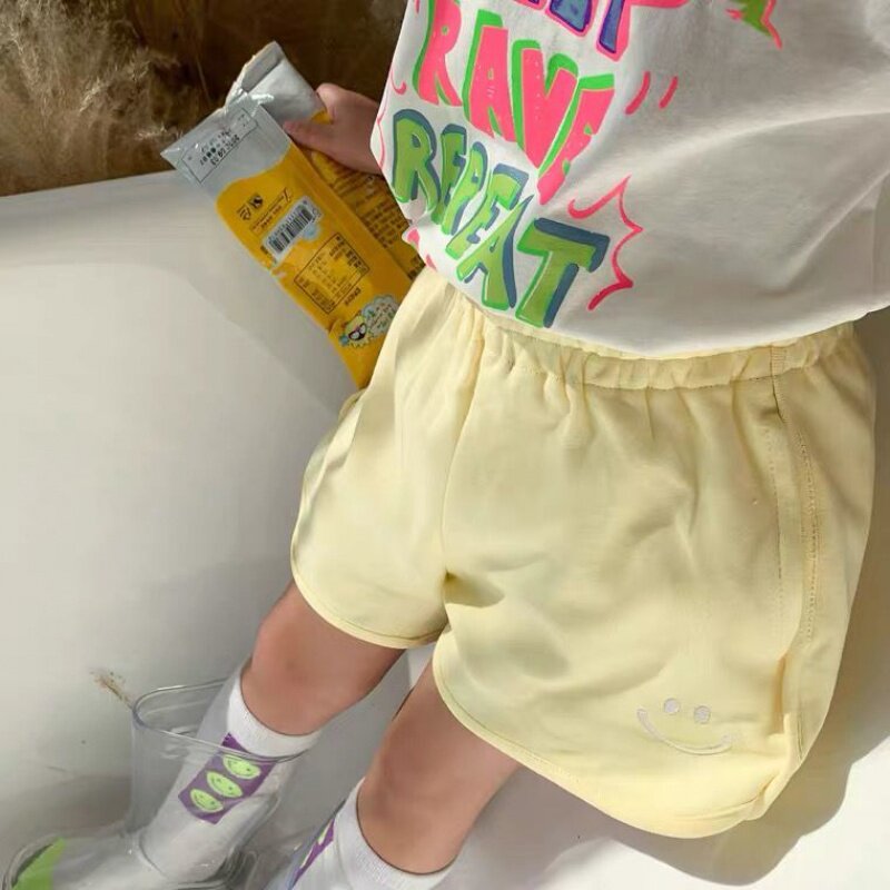 2021 spring and summer sports pants baby cotton hot pants children's candy color Korean version shorts boys and girls smiling face embroidery