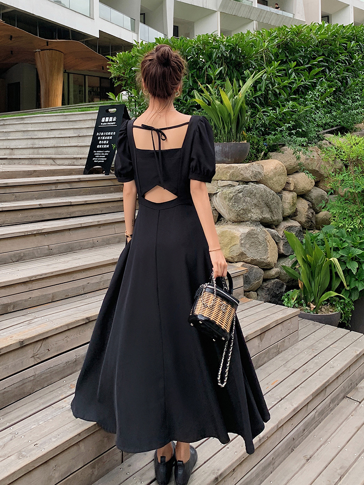 Lecea Alice Herbene Wind Little Black Dress Woman dress Summer 2022 new Bubble Cuff style black long dress