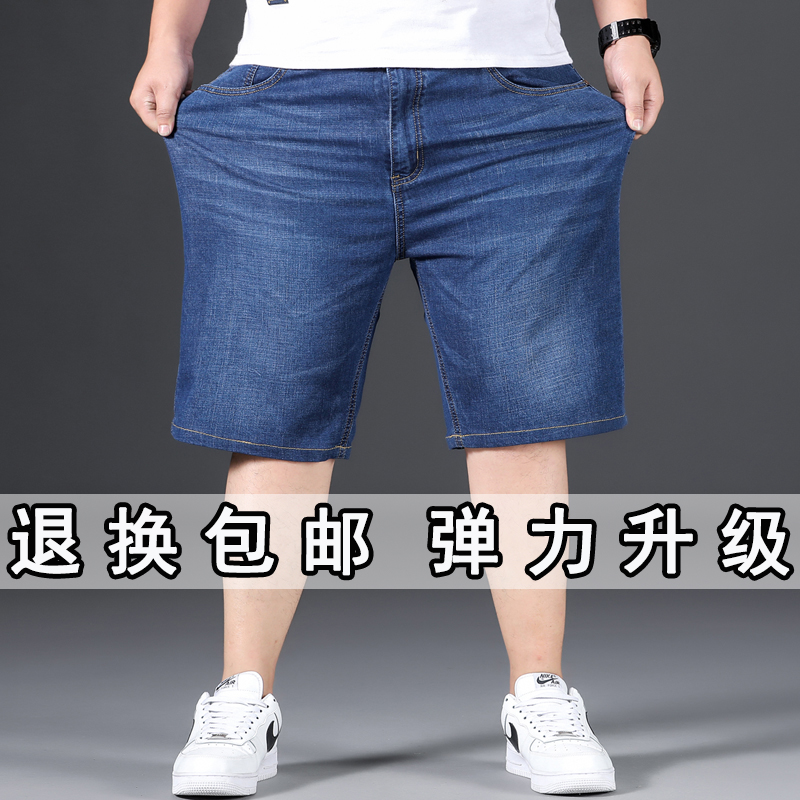 Summer ultra-thin denim shorts men's five-point pants plus fat plus size five-point pants fat man fat sports breeches trendy fat