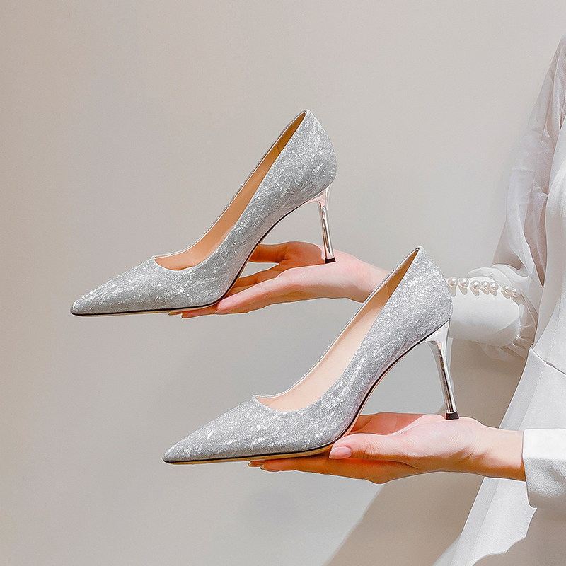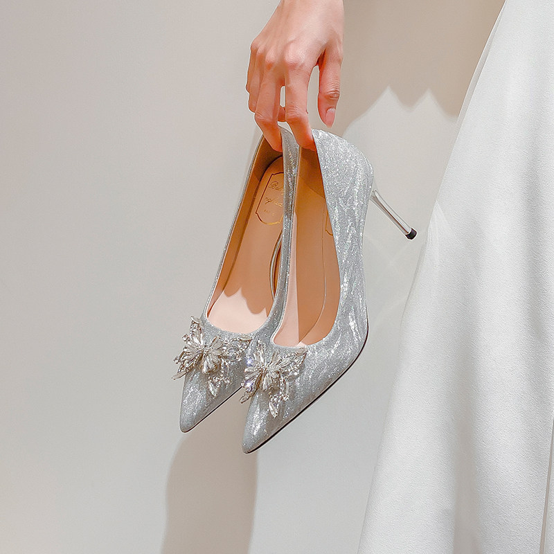 High heels woman 2022 New pointed fine heel Wedding Shoes Show and wedding dress Two wearing not tired footed bridal shoes bridesmaid shoes