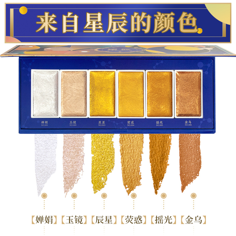 Feilebiao star solid watercolor pigment Water-soluble set Full set of beginners Gold star color pearl color art professional Chinese painting Nail art Watercolor mini small box portable sub-pack