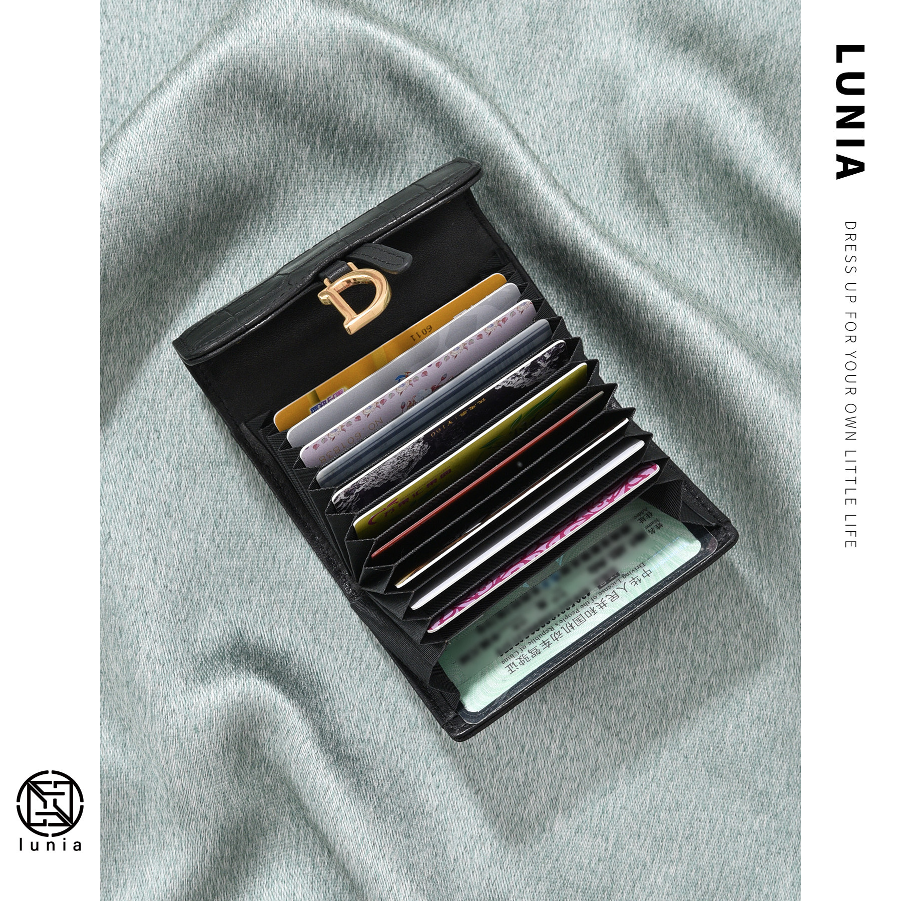 European and American crocodile textured genuine leather organza card bag documents clip Bull Leather Female type small large capacity Mini cutting sleeve