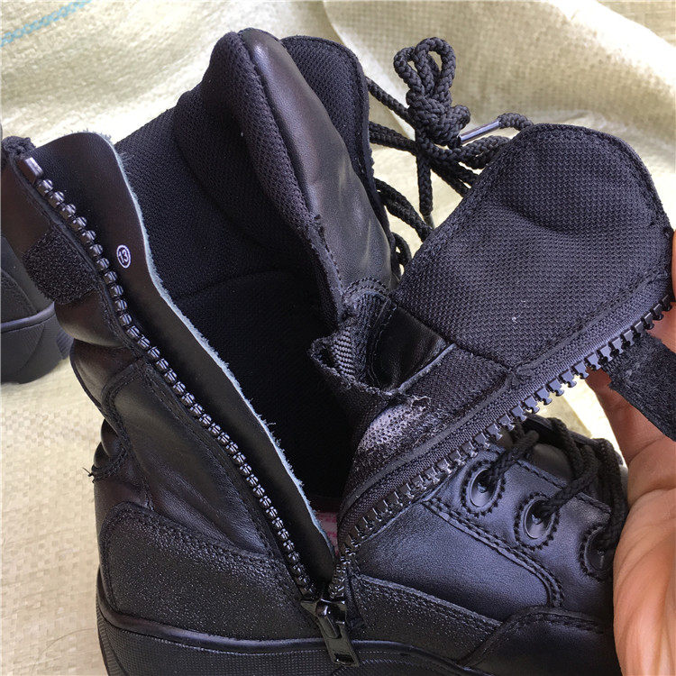 Black winter special boots tactical men's mountaineering boots side zipper lace-up cowhide boots cross-country hiking snow boots