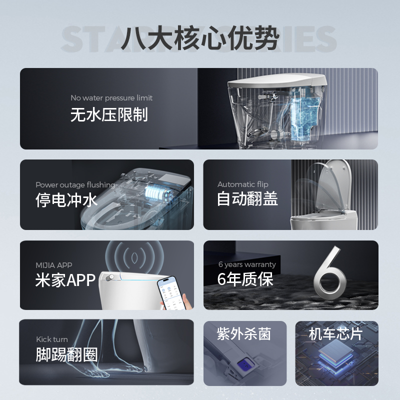 Buttocks Wash Ladies Wash Seat Heating Water Temperature Adjustment Rinse Water Pressure Adjustment Drying Nozzle Self-cleaning Automatic Deodorization Remote Control Nozzle Move Cleaning Instant Heat No Water Pressure Limitation