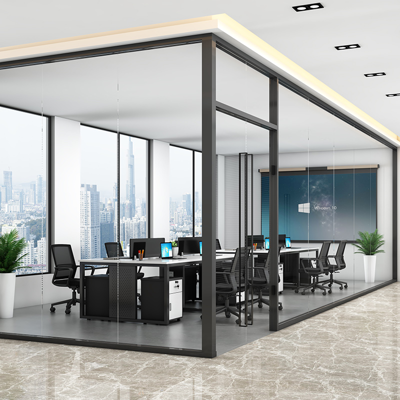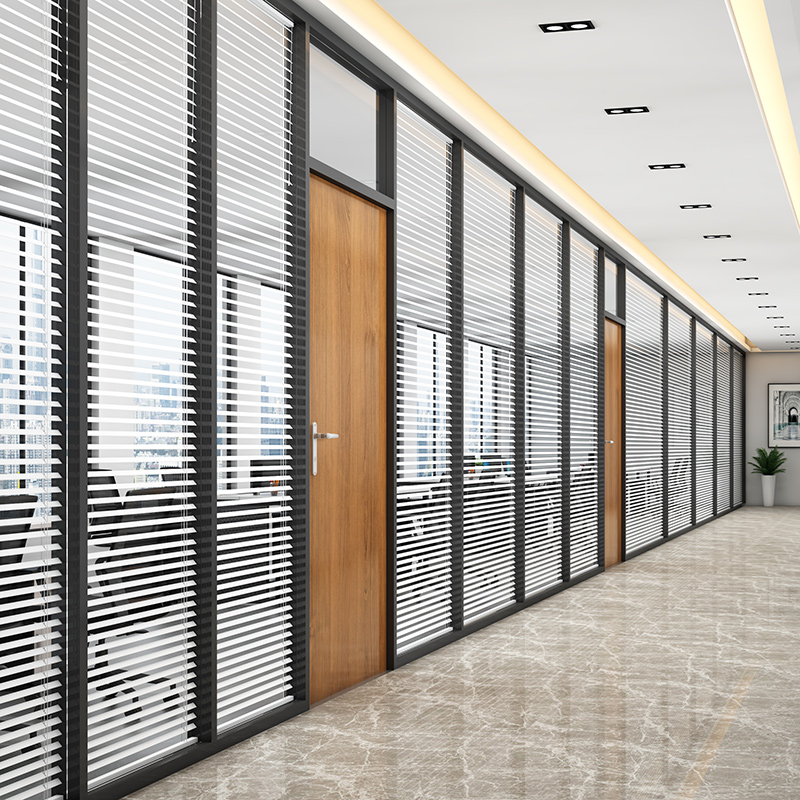 Partition wall Office high room Double sound insulation tempered semi-frosted aluminum alloy screen with louver office glass