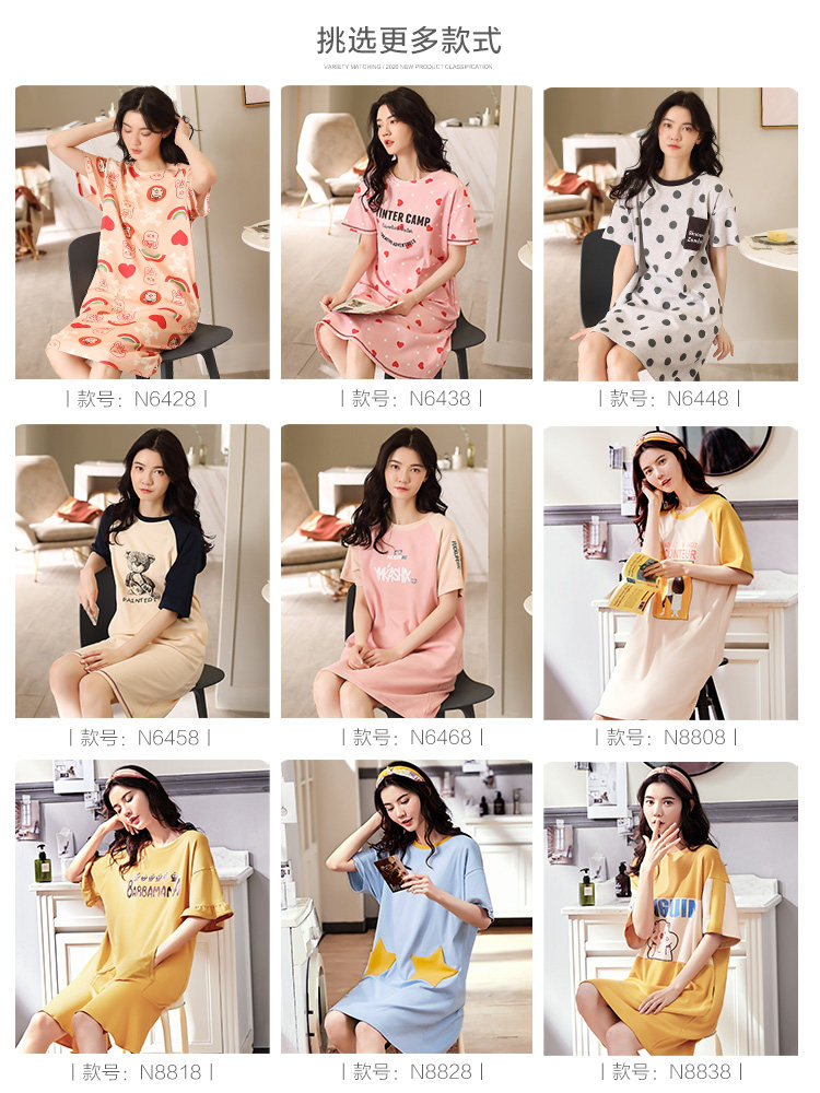 Hengyuan Xiang Sleeping Dress Woman Summer 2021 New Pure Cotton Short Sleeve Thin medium Long version of skirt Home Sleeping Clothing Summer