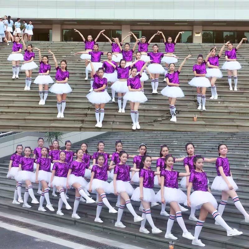 61 children's performance costume fluffy gauze skirt primary school students cheerleading purple sequins children's dance performance costume female