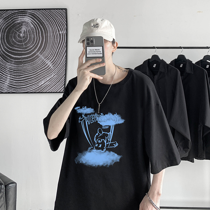 Original Cebu boy short sleeve T-shirt trendy loose half-amputee Summer 2022 new Korean version ins 50%-sleeve port wind