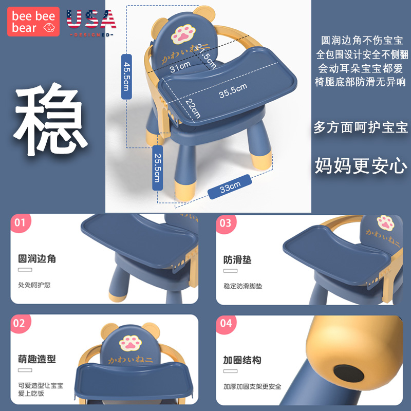 Baby stool back chair baby toddler eating called small dining chair seat home children's anti-fall bench one year old