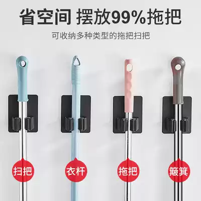 Stainless steel hanging mop hook clip punch-free wall-mounted powder room storage bathroom adhesive multi-function rack Simple