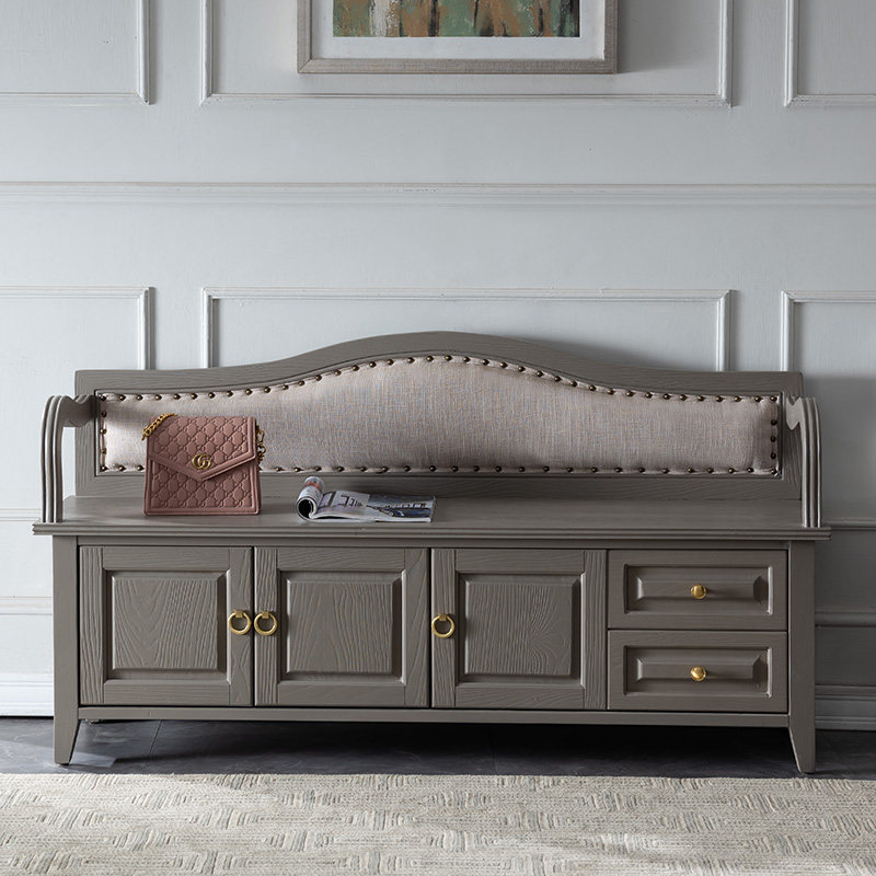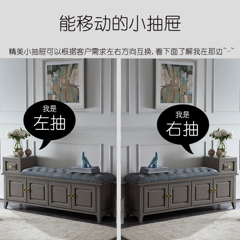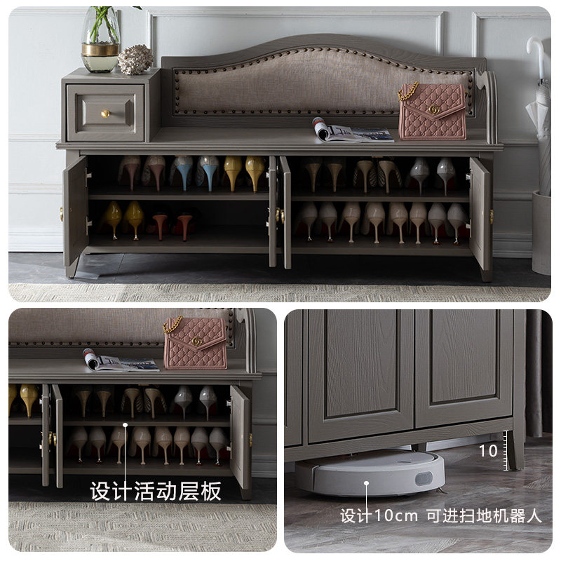 Light luxury back change shoe stool solid wood leather wear shoe stool door shoe cabinet entry porch storage stool storage bed end stool