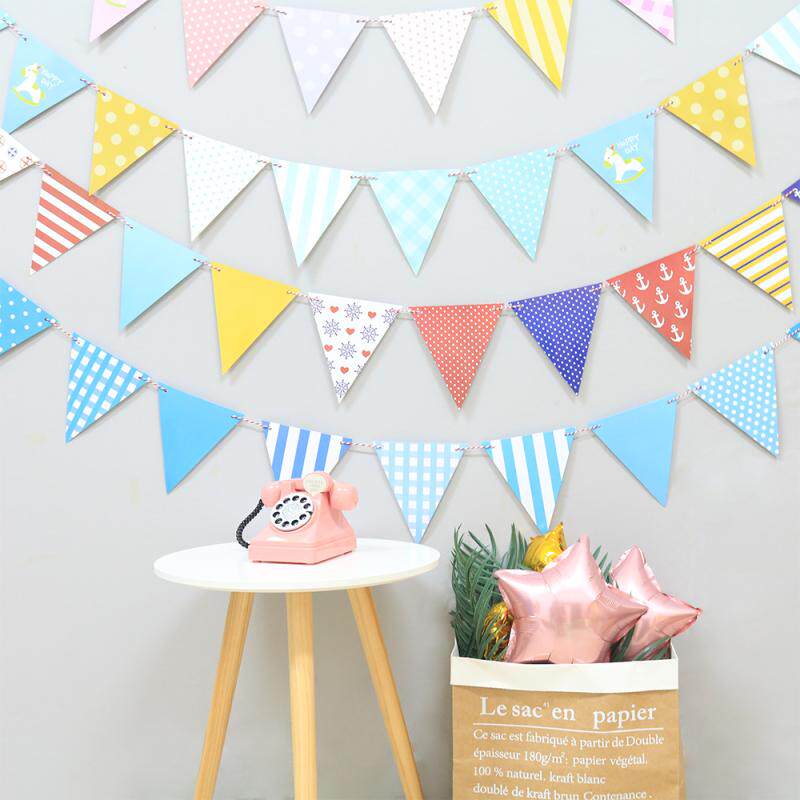Festive paper colored triangular bunting June 1 Children's Day kindergarten scene layout birthday party decoration pull flag