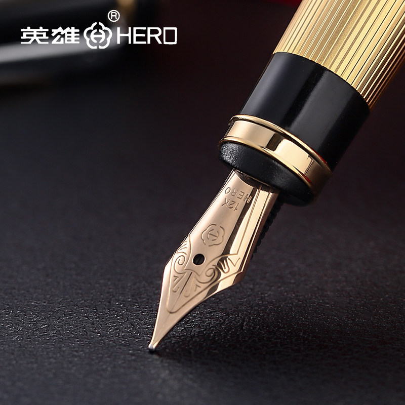 HERO hero 300 pen 12K gold pen male lady upscale business office with signature delivery gift ink pen gift ink pen gift box dress custom free lettering student with pen