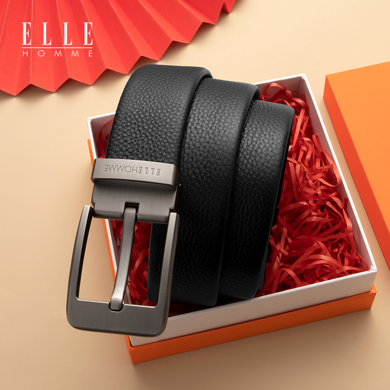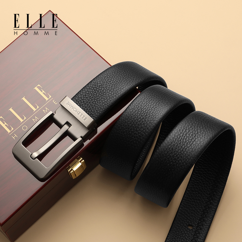 ELLE Belts Men Genuine Leather Needle Buckle Luxury Goods Belt Men's Head Layer Pure Bull Leather Upscale Branded Luxury