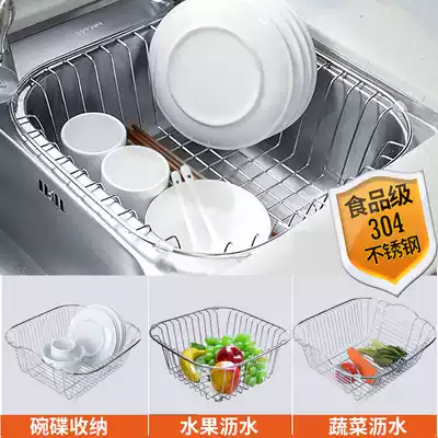 Sink drain rack sink 304 stainless steel bowl rack household pool retractable drain basket washing basin kitchen chopsticks