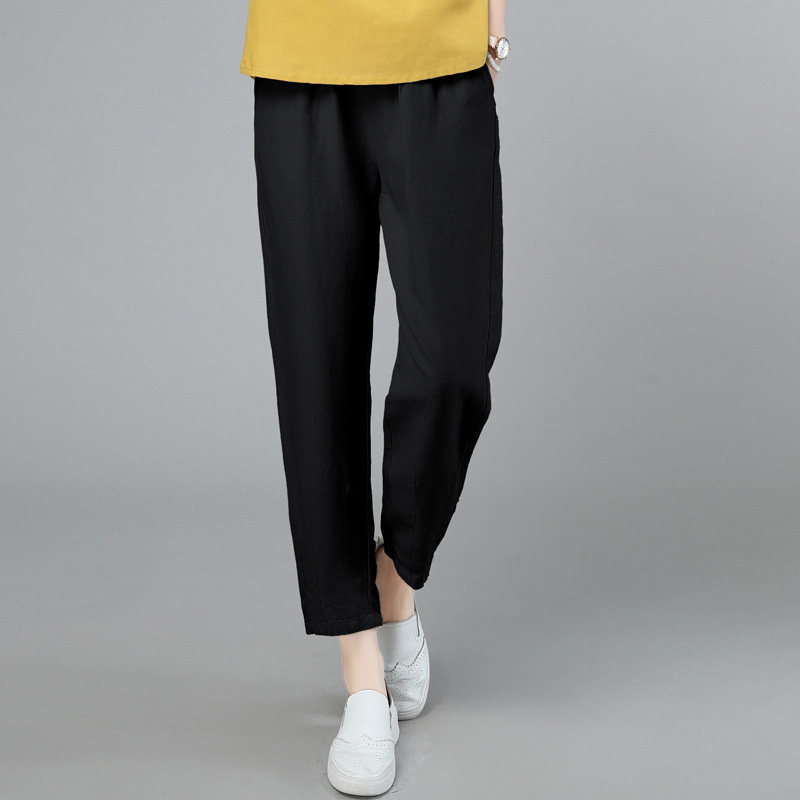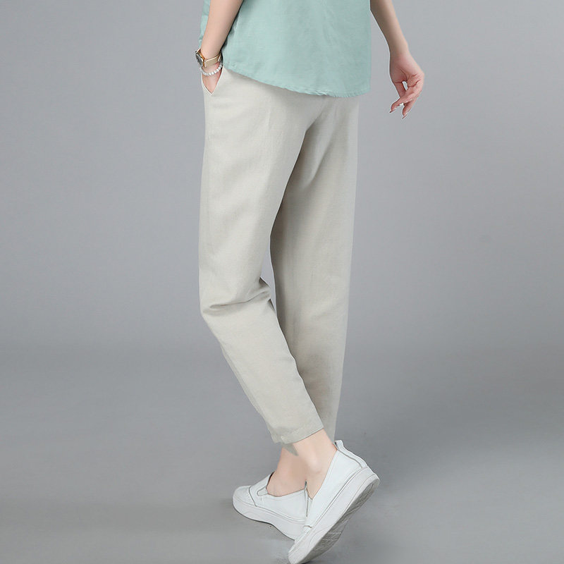 Zi Yixiu casual cotton linen elastic waist pants nine-point pants 2023 summer new slim temperament harem pants