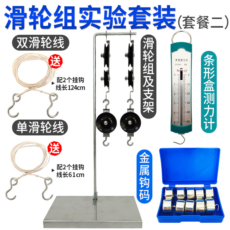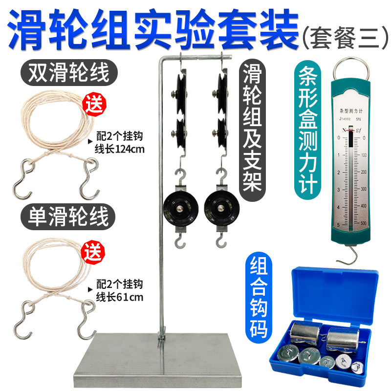 Junior high school pulley group physics experiment student pulley group and bracket metal hook code bar dynamometer spring teaching aids set fixed pulley pulley group primary school science mechanics experimental equipment