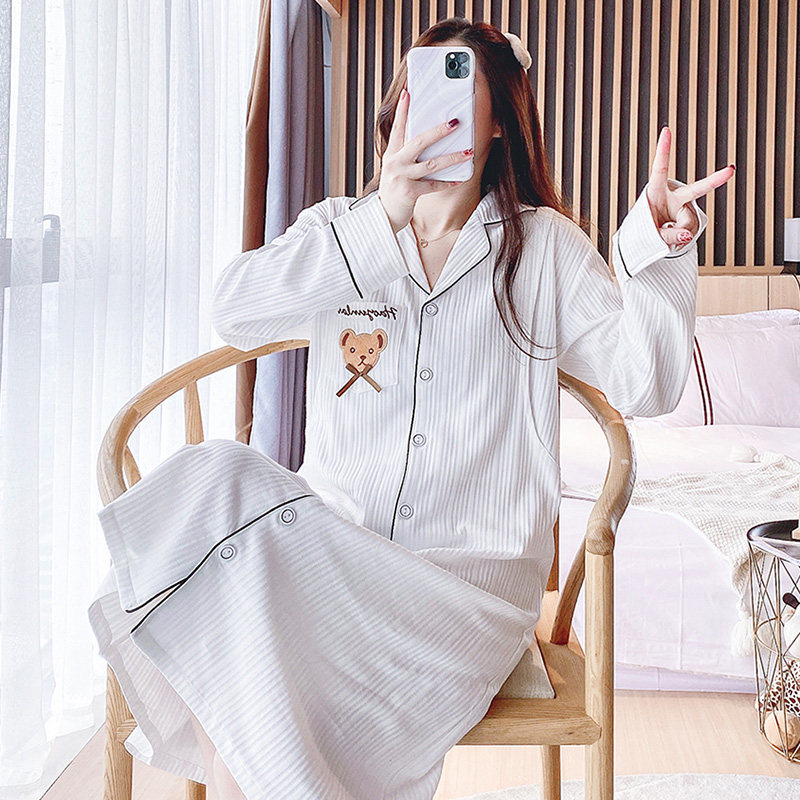 Can be worn outside maternity pajamas summer breastfeeding dress loose long-sleeved postpartum nursing clothes confinement suit breastfeeding nightdress