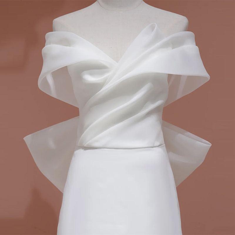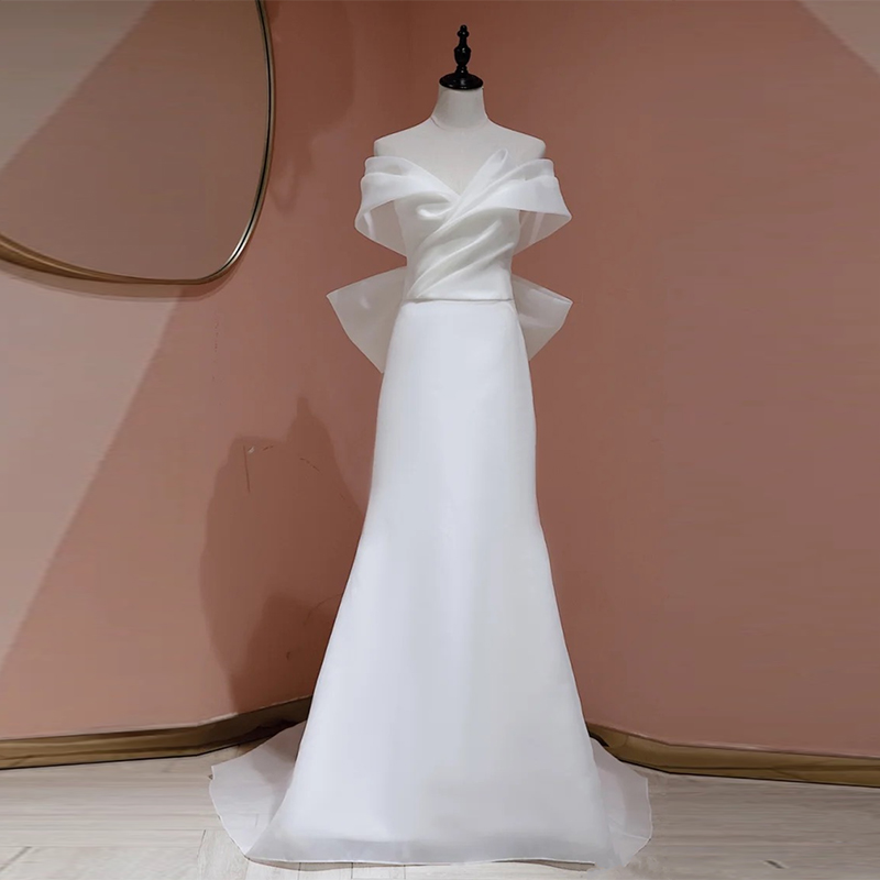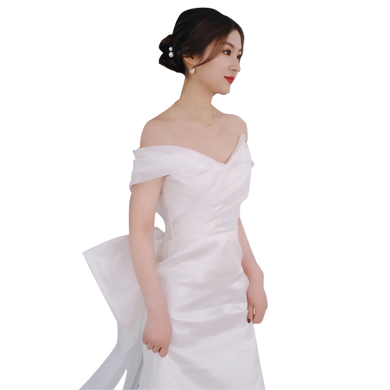 Fan-style light wedding dress sexy lined with 2021 ultra-fairy dreamy temperament slim out of the door veil white satin dresses