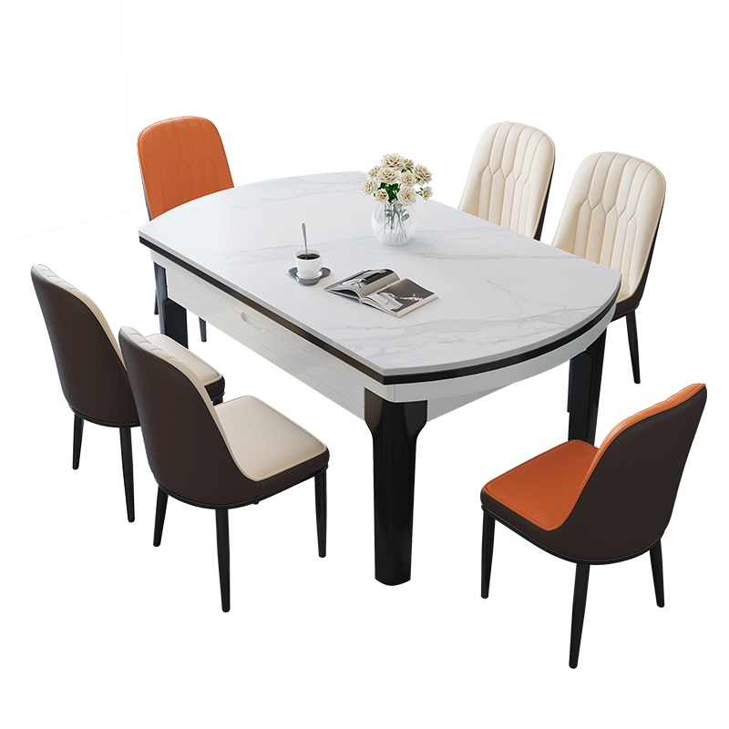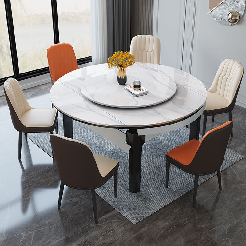 Rock plate dining table and chairs Combined modern minimalist light extravagant home small household type solid wood telescopic folding rice table variable round table