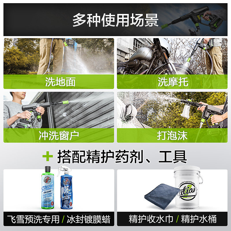 Green Overwashing Machine Theorizer Wireless Home Car Lithium electric high-pressure cleaning nozzle Electric tap water car wash water gun