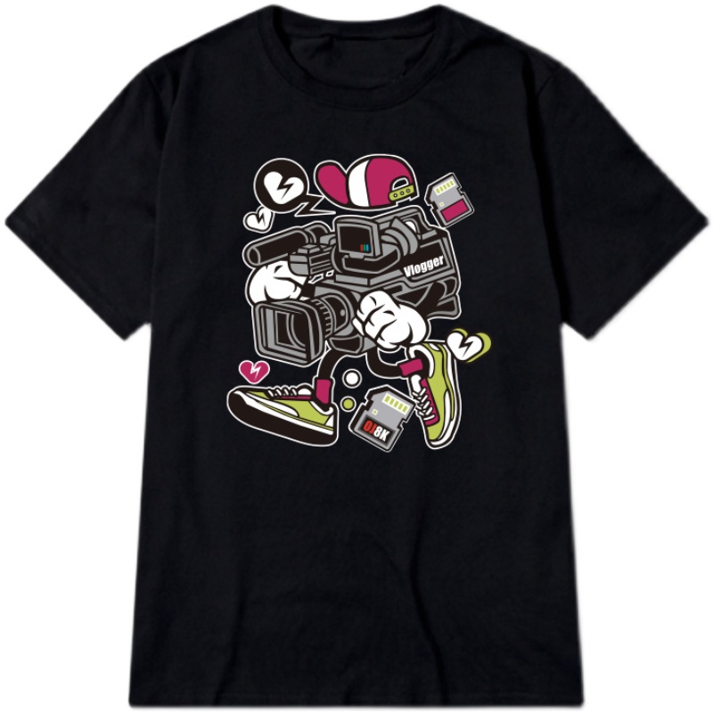 Photography Summer Port Wind Trendy Pure Cotton White 100 Hitch Loose Short Sleeve T-shirt Male And Female Couple Half Sleeve Daily Round Collar