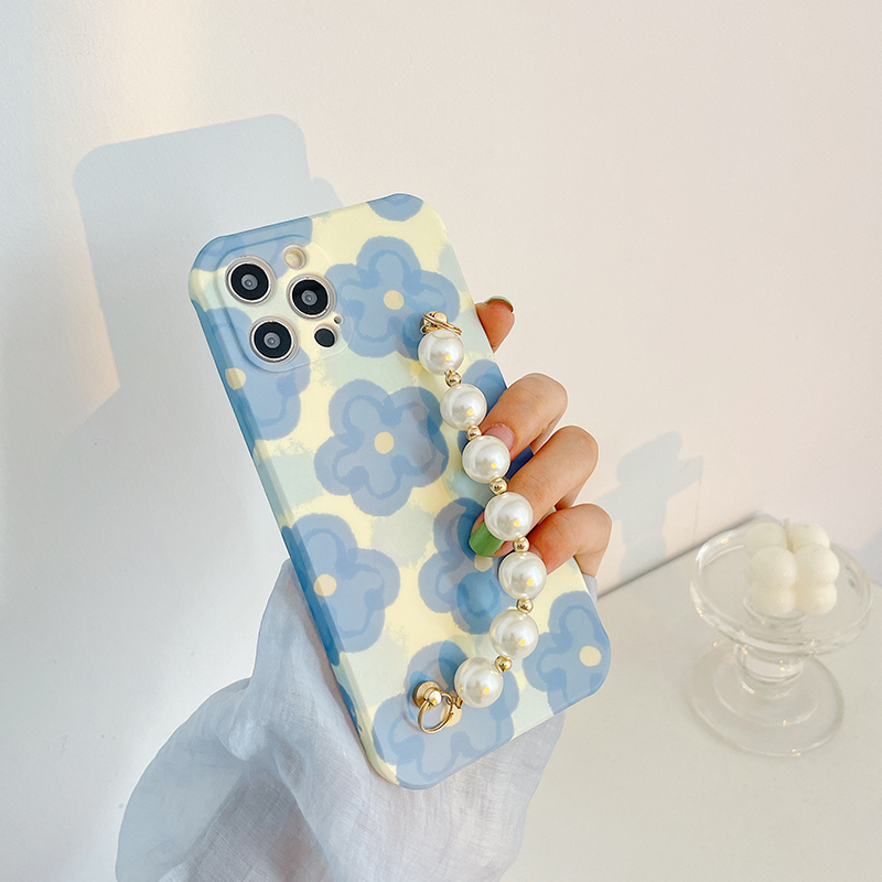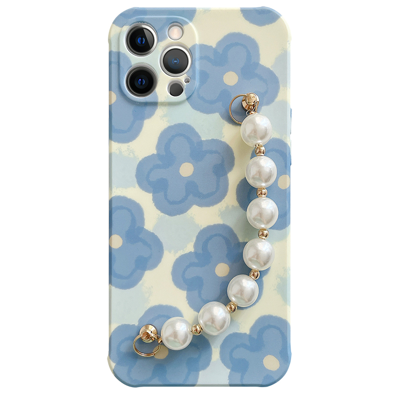 Korean Wind Blue Flower Pearl Chain applies 13 12 Pro Max Apple 11 mobile phone protective shell iPhonese all-bag iPhones X XS anti-fall XR protective sleeve