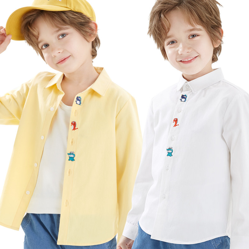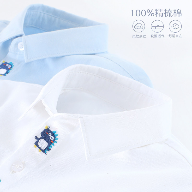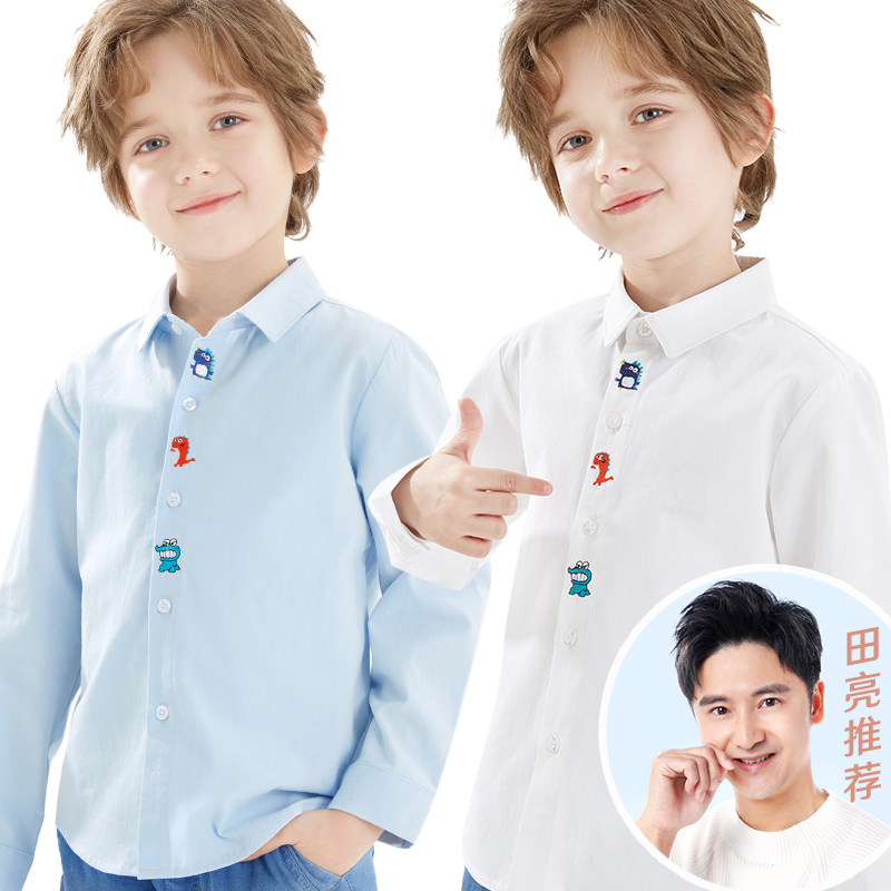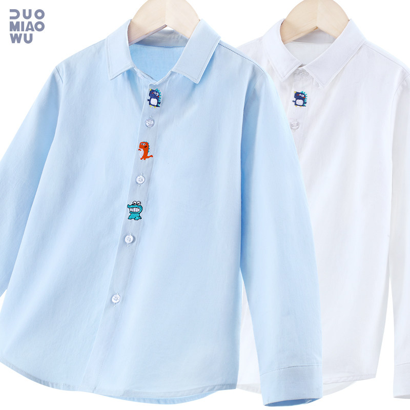 Boy Pure Cotton Shirt Child Long Sleeve White Shirt 2021 Spring Autumn New Spring Clothing Big Boy Boy Blouse
