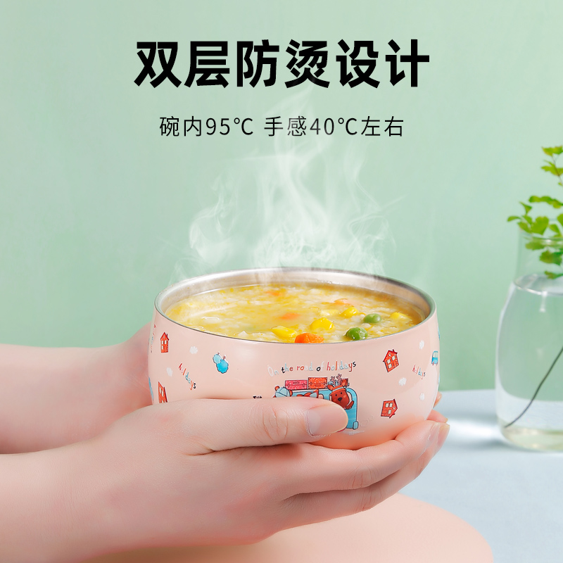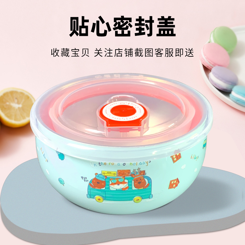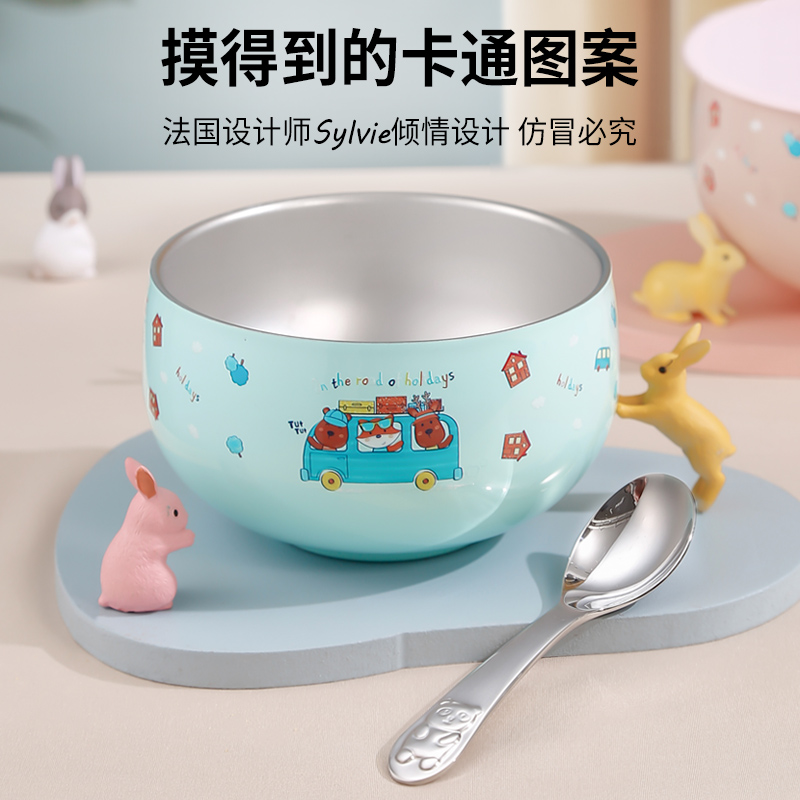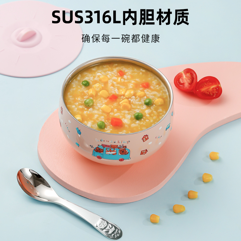 316 stainless steel children's bowl anti-fall and burn-proof household single with cover cute baby suit baby to eat and creativity