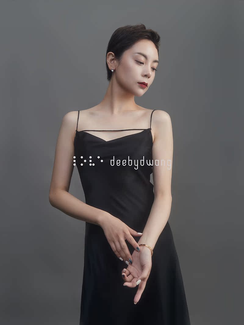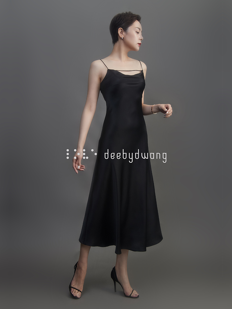 deebydwang early spring new 28mm heavy weight silk suspender skirt hanging folding collar elegant line sense