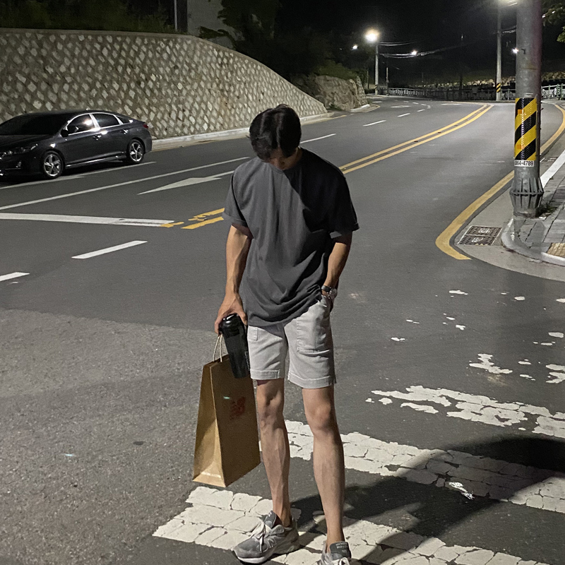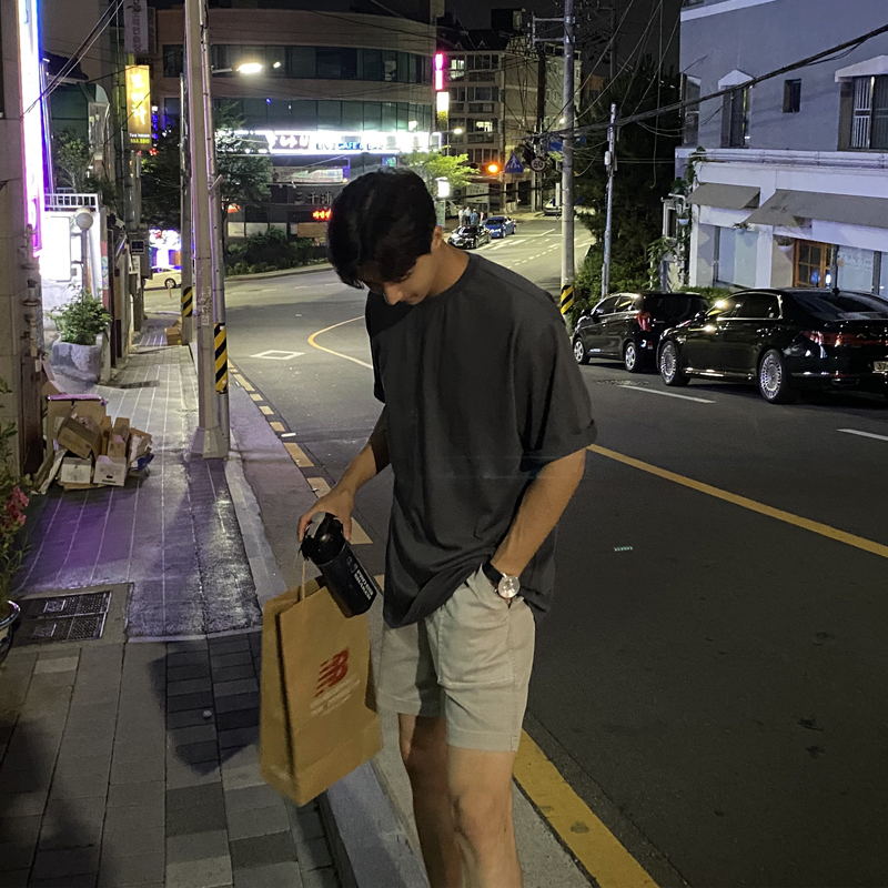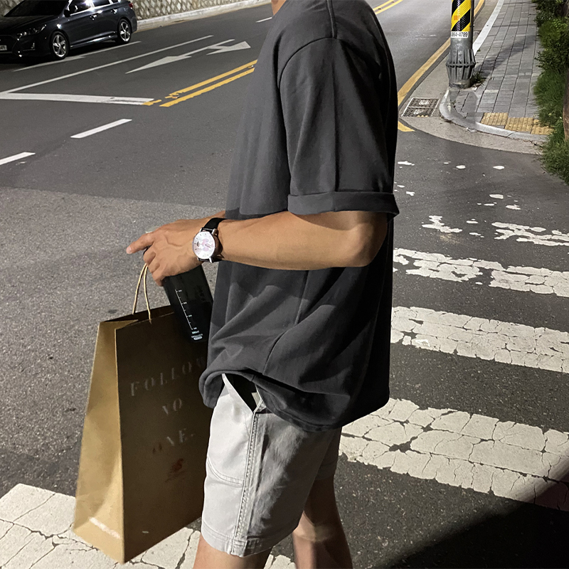Bisher 2022 new washed cotton white short sleeve T-shirt round collar male trend half sleeve loose male T-shirt grey