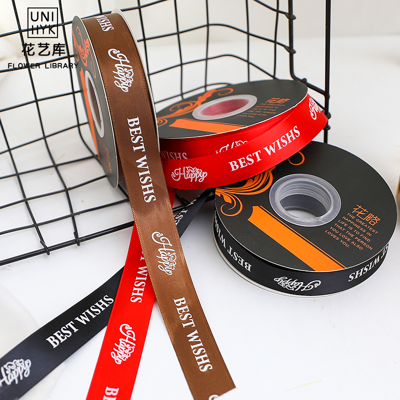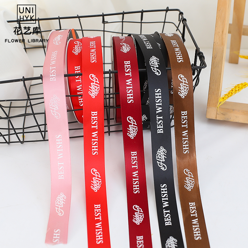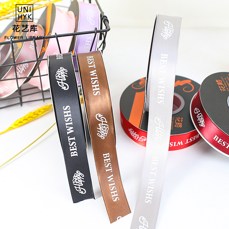 New Flower Ribbon Good Wish Premium Printed Polyester Fiber Ribbon Butterfly Bottle with Cake Shop Gift Box