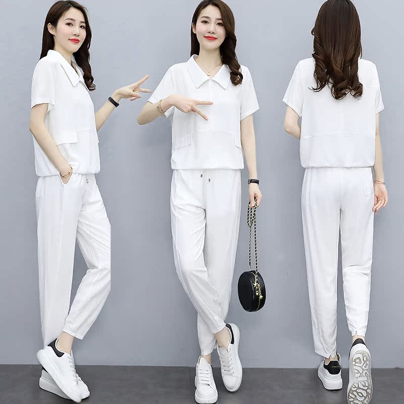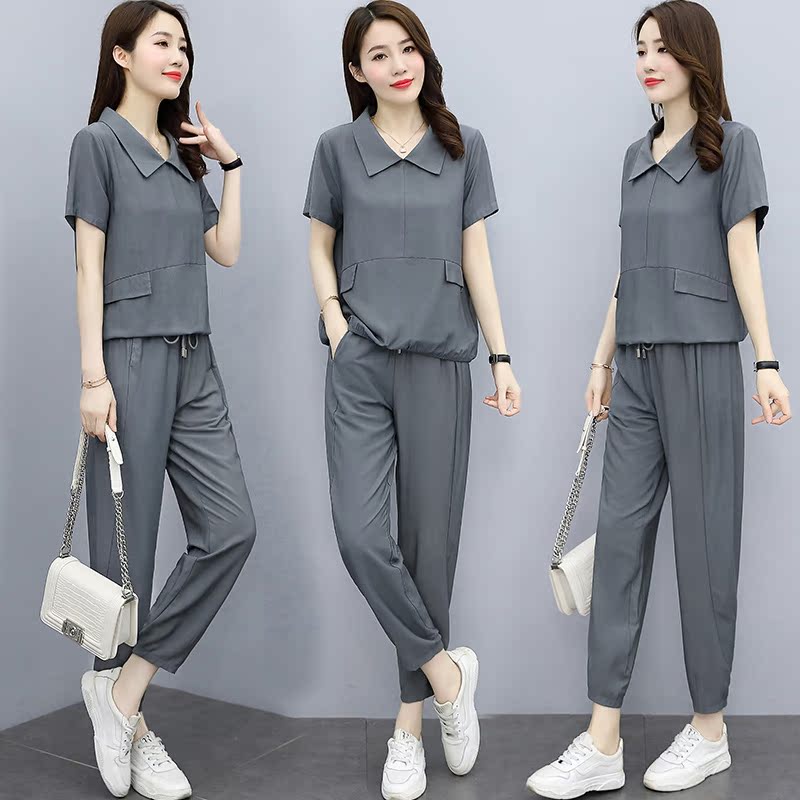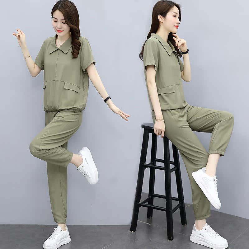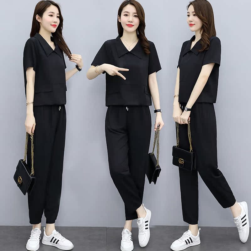 Young Moms Suit 2022 Summer New Fashion Loose Big Code Casual Ocean Air Display Slim Sport Two Sets