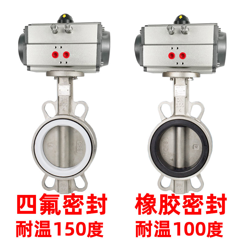 304 Stainless Steel Pneumatic Butterfly Valve D671X F-16P Teflon Wafer Valve DN100 150 250 300