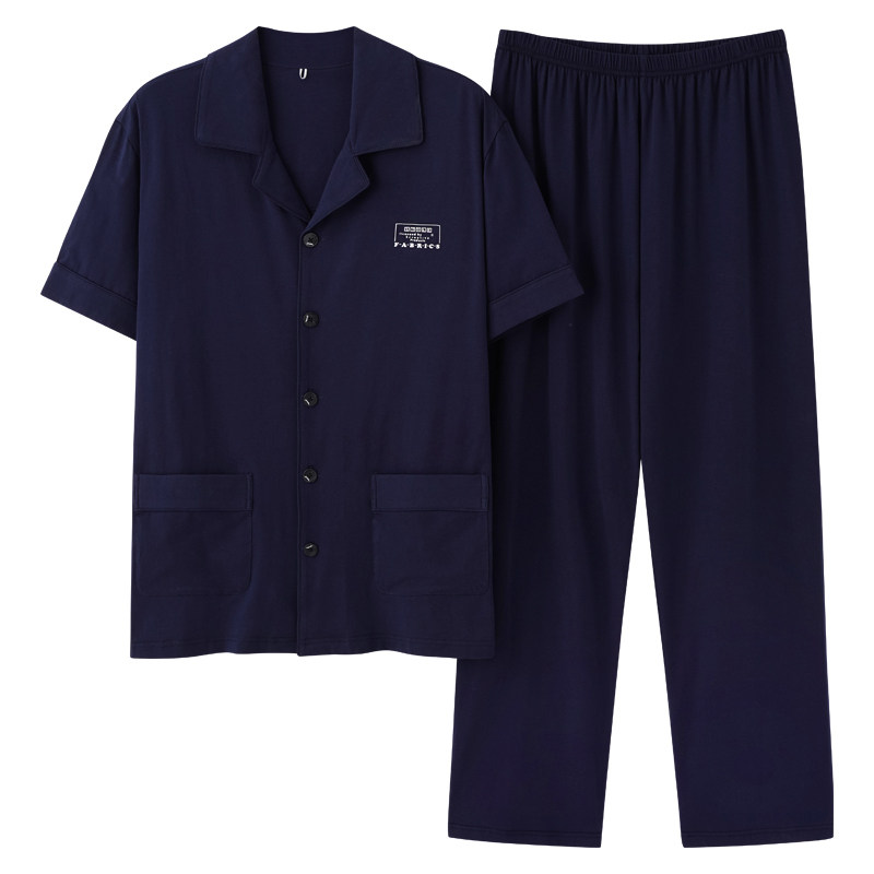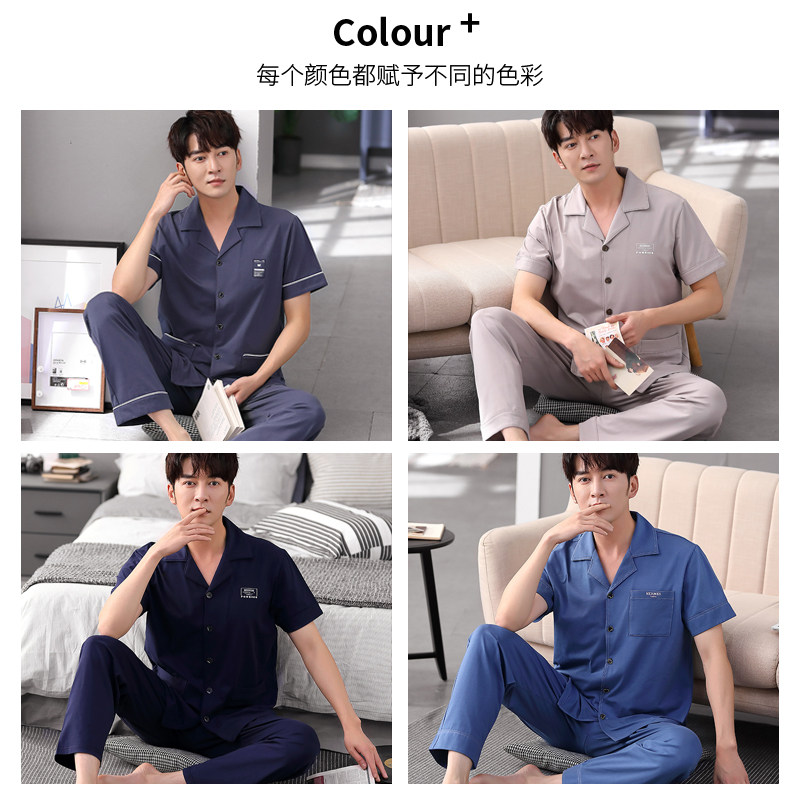 Summer pajamas men 2021 new youth short-sleeved trousers thin section pure cotton summer high-grade middle-aged dad suit
