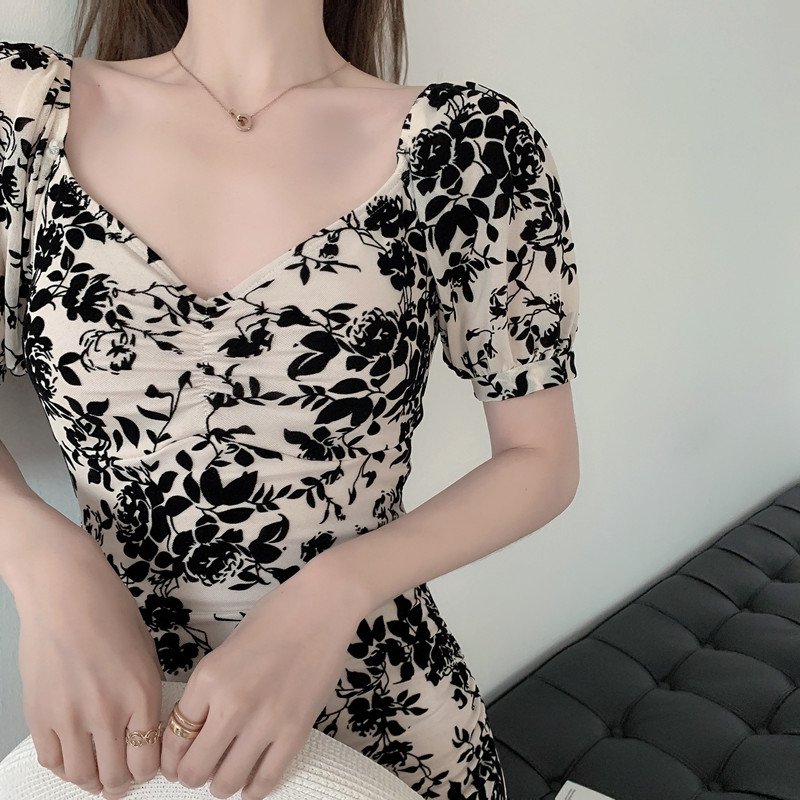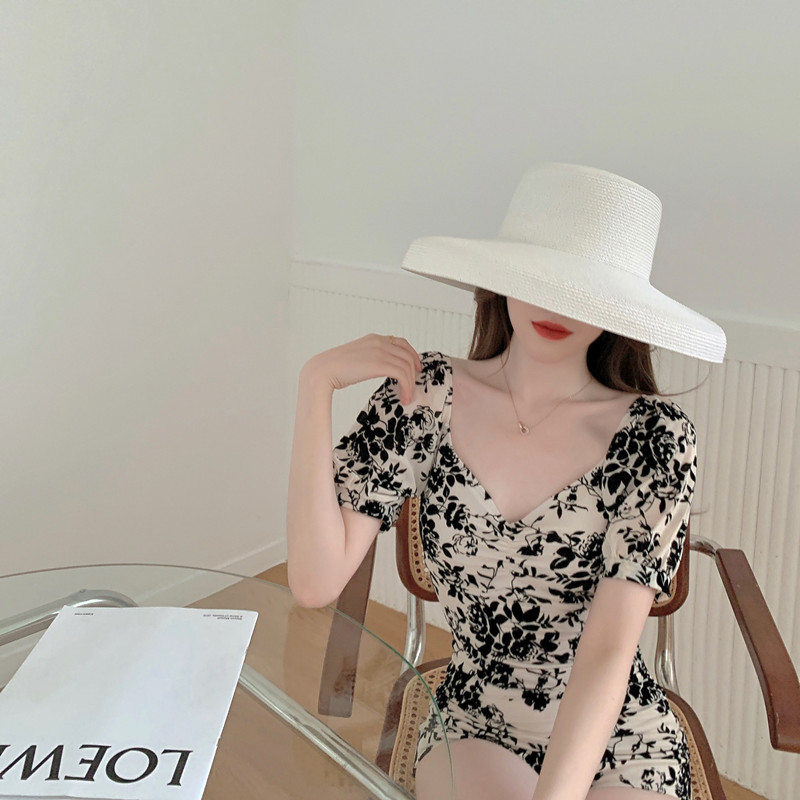 Swimsuit women's summer 2022 new hot style high-end one-piece triangle sexy short-sleeved belly-covering thin gather swimsuit