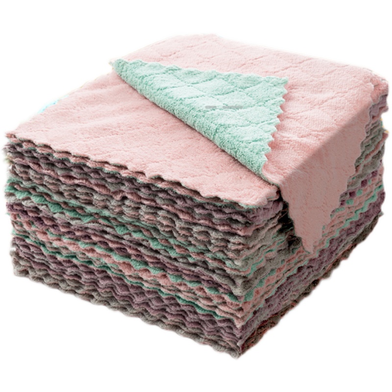 Home big number 10 Double-sided thick coral suede Home Hundred White Cloth No Stick To Stick Oil Sloth-Dishwashing Kitchen Dishcloth