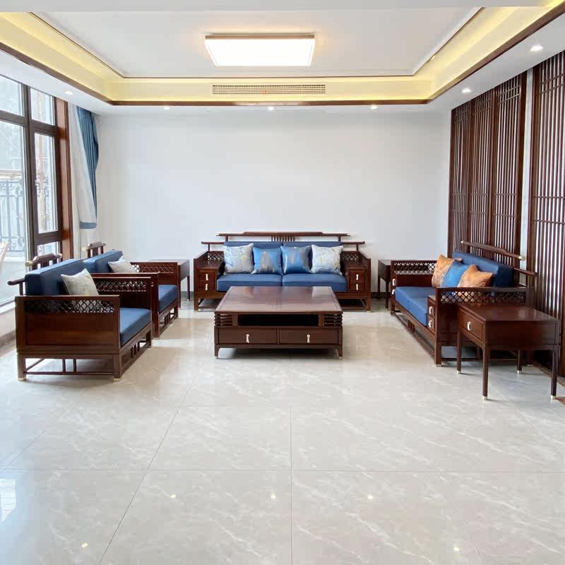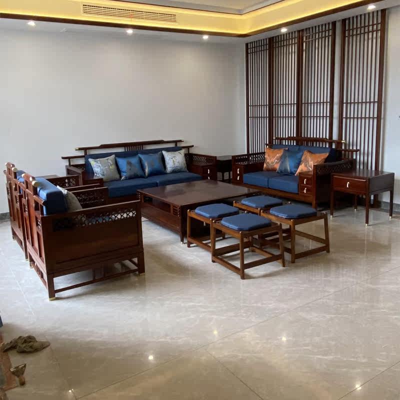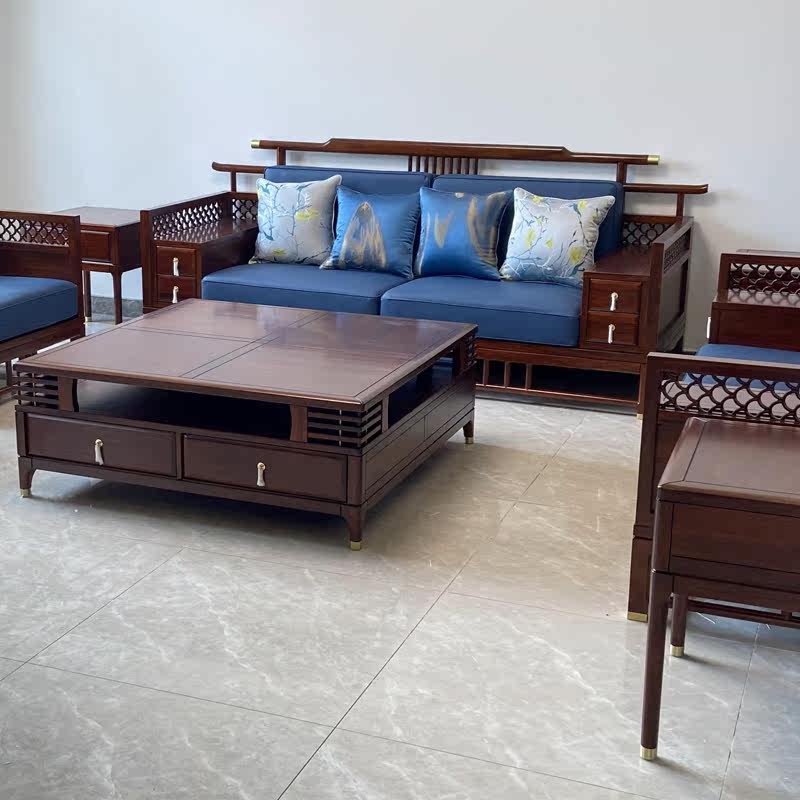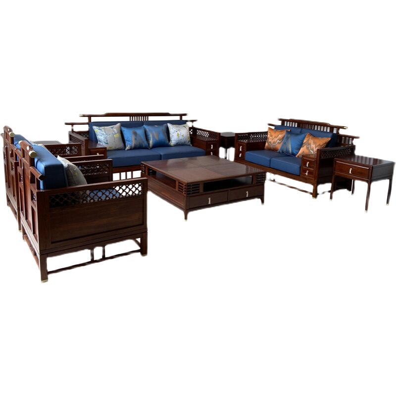 New Chinese style solid wood sofa combination ebony wood ebony wood modern Zen villa Dapingshu living room custom furniture - Taobao