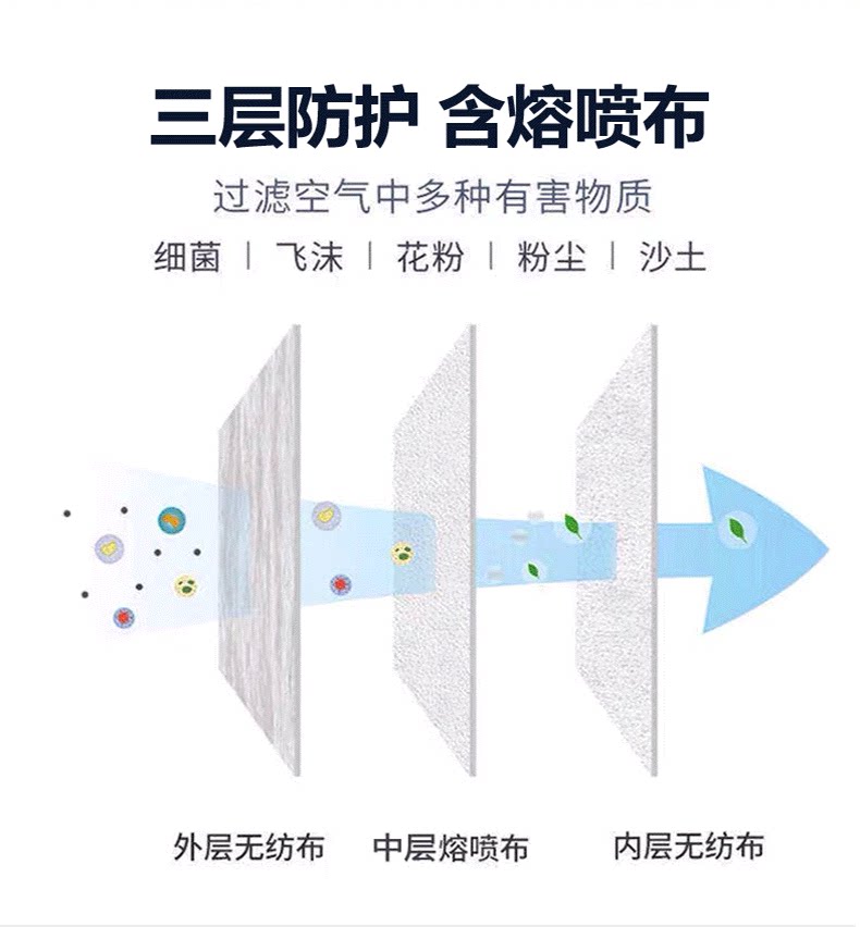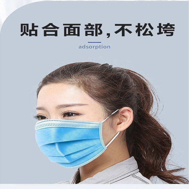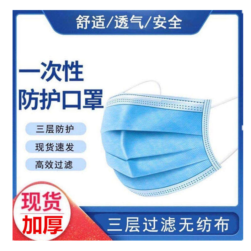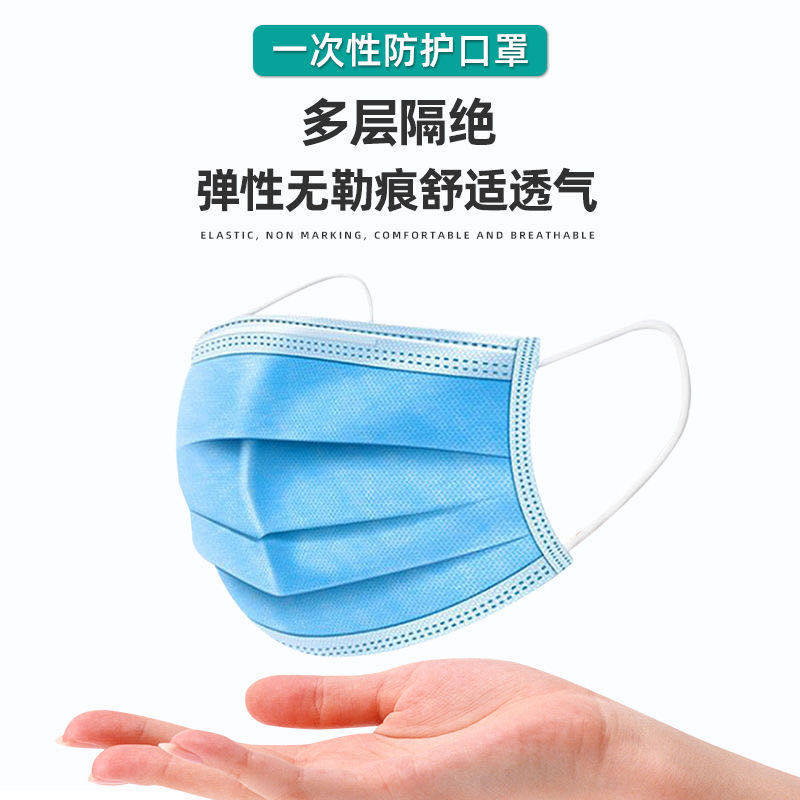 50 only fused spray cloth sun protection standard disposable dust-proof and breathable three-layer adult thickened blue protective mask