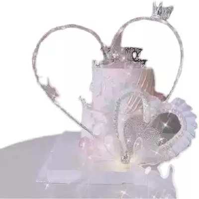 Little Red Book Net red goddess love cake decoration three layer love Pearl flash Diamond Love decoration three-piece set