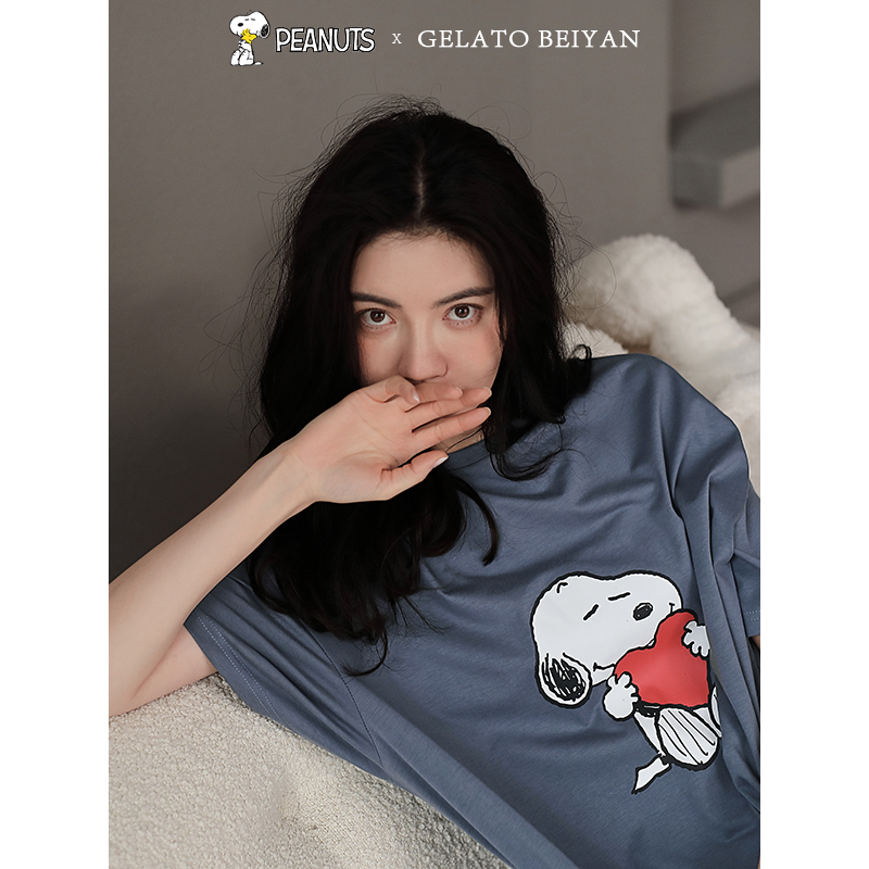 Beyan Snoopy women's summer Korean version of loose pajamas thin women cute cool cotton home dress dress