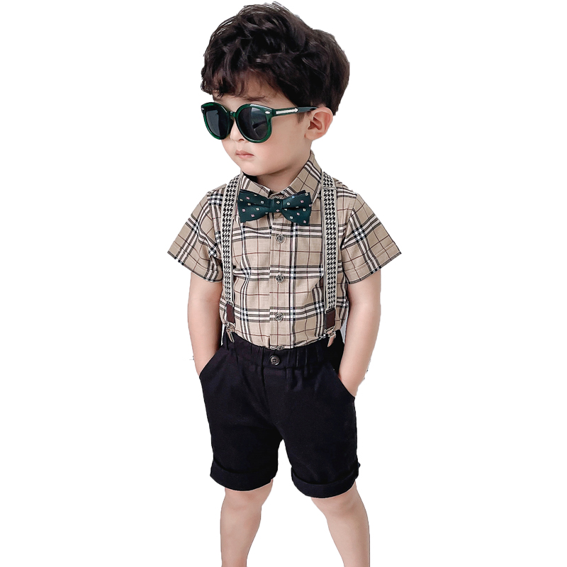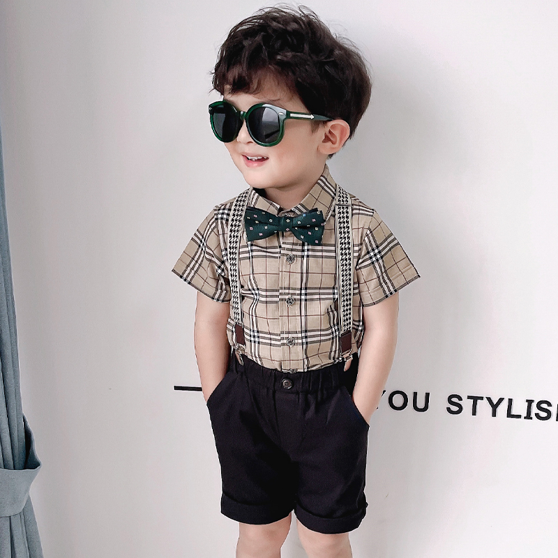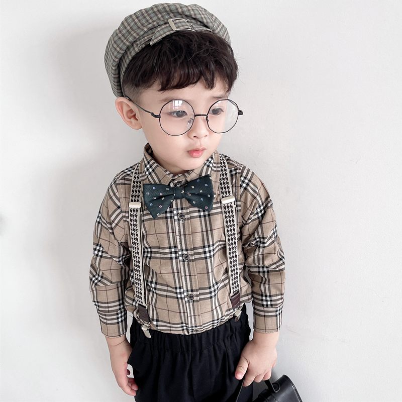 Baby one-year-old dress British style boy spring and summer shirt autumn children's suit overalls suit flower girl handsome